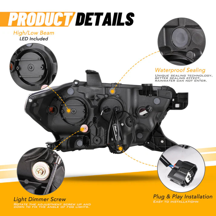 Winjet 2016-2019 Toyota Tacoma/2020-2023 Tacoma SR SR5 TRD Sport DRL Head Lights - Glossy Black/Clear